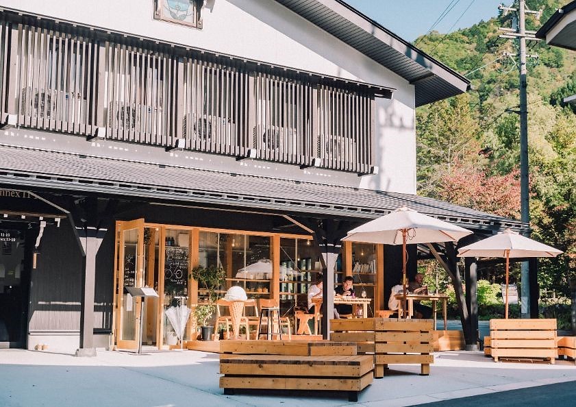 信州や飛騨の食材を使った石窯ピッツァやラテ、ジェラートを提供し、お昼から夜まで営業。